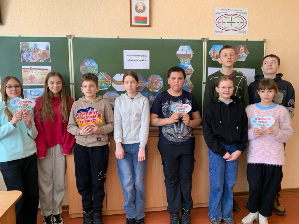 Игра-викторина «Родной край» собрала сегодня в стенах школы учащихся 5-8 классов. Ребята отвечали на вопросы,разгадывали ребусы, отгадывали загадки. Наши ребята в очередной раз показали,как много они знают о родной стране,о традициях и культуре белорусского народа.